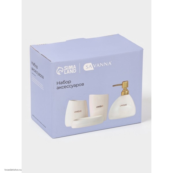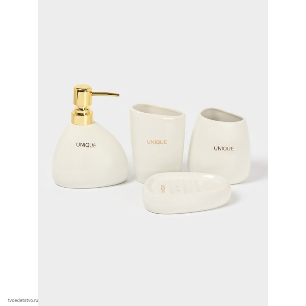 Каждый элемент набора продуман до мелочей: мыльница размером 13х10х2,9 см, дозатор для мыла объемом 400 мл и два стакана различных размеров (410 мл и 300 мл), которые идеально дополняют друг друга, создавая гармоничный ансамбль.