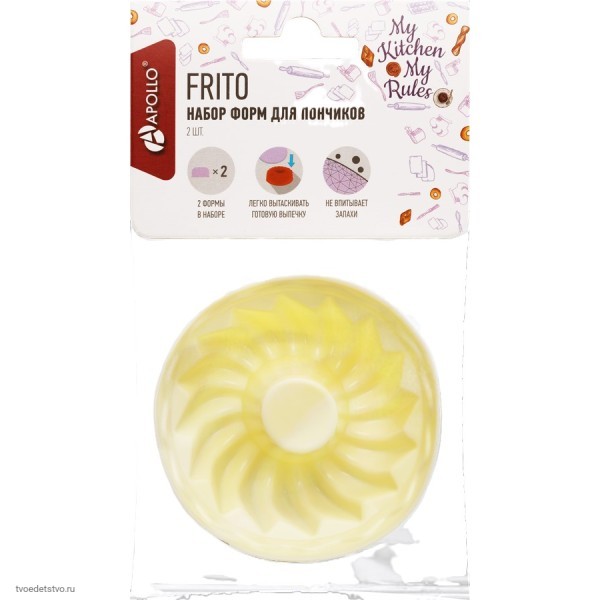 Набор форм для пончиков Frito 2шт от бренда APOLLO предназначен для выпечки и замораживания различных продуктов. Подойдут для приготовления пончиков, кексов, печенья, желе и шоколада. Формы быстро нагреваются и охлаждаются, а приготовленные в них блюда легко доставать. Замороженные блюда лучше вынимать из форм сразу после приготовления, а выпечке дать немного остыть. Перед заполнением поставьте формы на основу (решетка, противень, подставка, круг СВЧ). Для выпекания смажьте формы животным жиром или растительным маслом (во время следующего использования смазывать формы не обязательно). Не предназначено для использования на открытом огне, в микроволновой печи на функции «гриль». Не оставляйте на разогретой варочной панели любого типа. Можно использовать в духовке (до 230 градусов), микроволновой печи, холодильнике и морозильной камере (до -40 градусов).