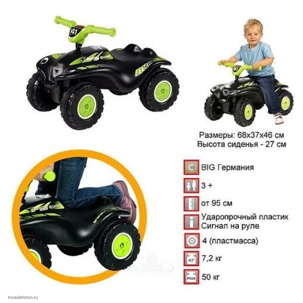Легендарные немецкие машинки BIG с буйволом на логотипе! Являются примером для подражания на всем рынке игрушек. Продукция под брендом BIG производится на заводах Германии с использованием уникальных технологий. Они прочные, безопасные и очень-очень классные!