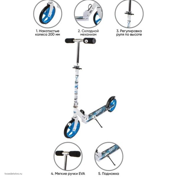 - Диаметр передних и задних колес: 200 мм