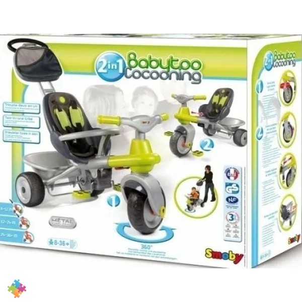 - В задней части велосипеда находится корзинка для игрушек, которая может откидываться назад.