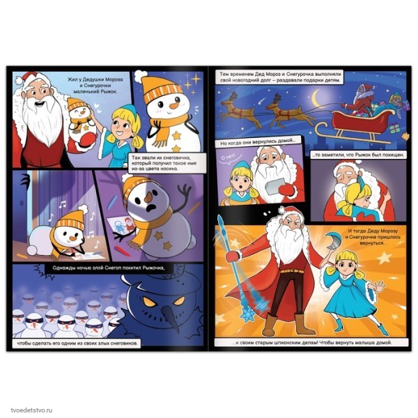 - История с динамичным сюжетом увлечёт ребёнка и поможет скоротать время в ожидании праздника.