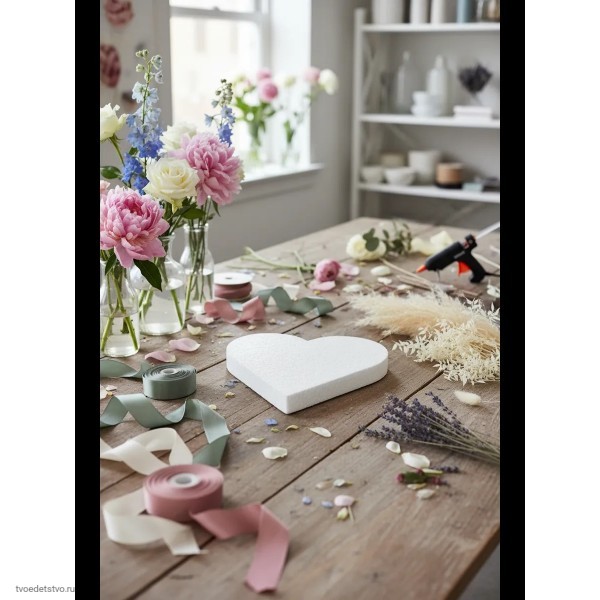 Пенопласт отлично подходит для поделок и декоративных композиций. Такая форма широко используется как пенопласт для букетов и основа для букета с искусственными или сухими цветами, для оформления витрин, фотозон и праздничных композиций. Заготовка сердечко особенно востребована для тематического декора 14 февраля, Дня Святого Валентина и Дня всех влюбленных, 8 Марта, юбилеев, свадеб и мероприятий.
