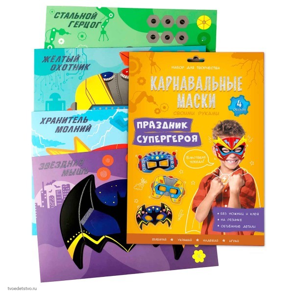 «Праздник супергероя» – набор для настоящих мальчишек! Яркие и блестящие маски станут отличным дополнением игры и праздника – состязание супергероев станет ещё увлекательнее!