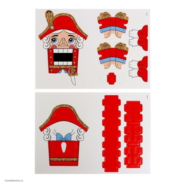 Соберите сказочного героя своими руками! 3D-конструктор «Щелкунчик» — это новогодний набор для создания объёмной фигурки без клея и ножниц. Дети от 3 лет легко соберут праздничный символ из плотного пенокартона.