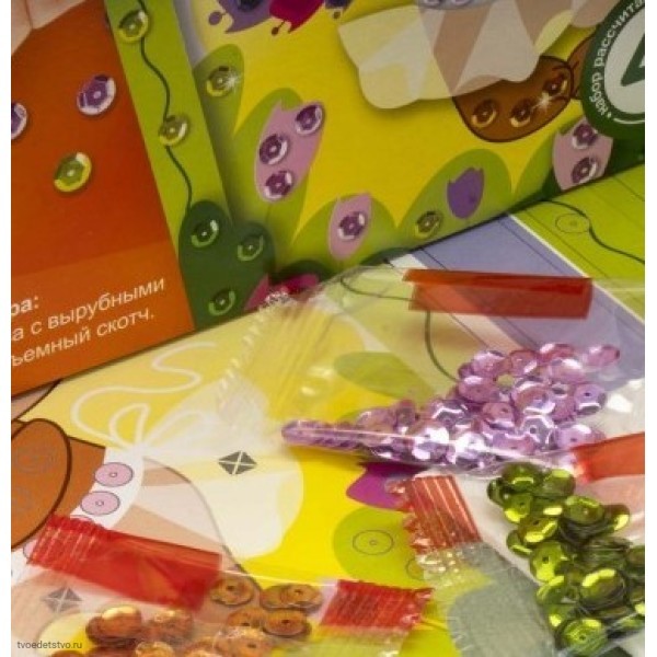 Набор для создания объемной и блестящей аппликации при помощи пайеток и картона.
