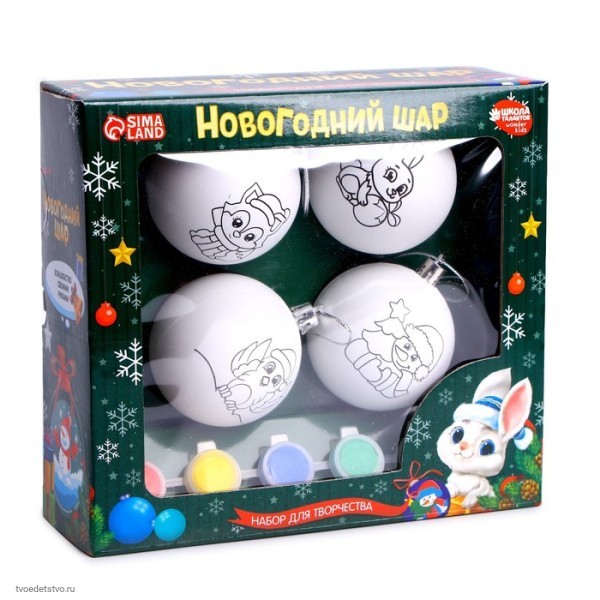 В наборе шары с нанесённым рисунком. Вам остаётся лишь проявить фантазию и раскрасить их на свой вкус. Дополните рисунок сверкающими блёстками, которые придадут шару ещё больше волшебства. Набор шаров также станет прекрасным подарком друзьям и близким.