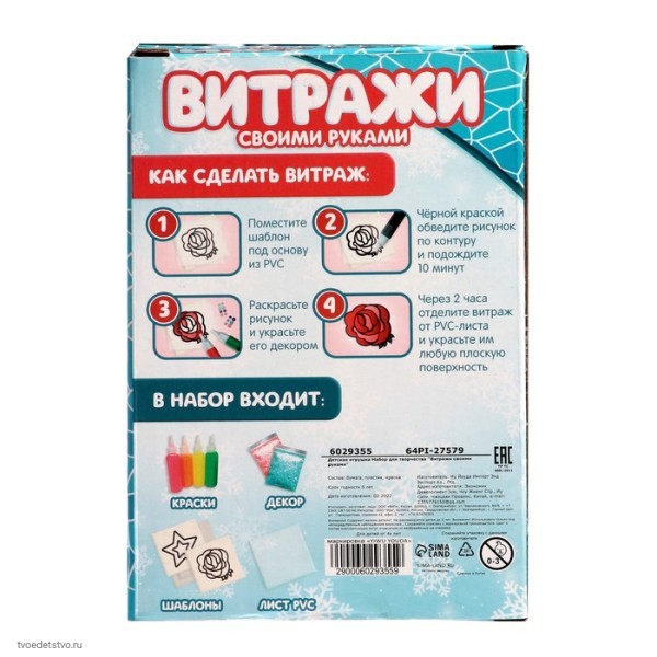 В серии наборов для творчества «Раскрась витражики» представлено 7 видов наборов.
