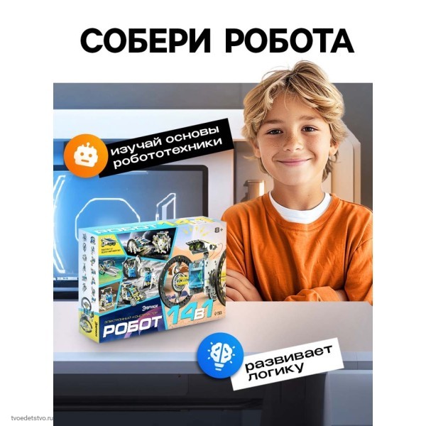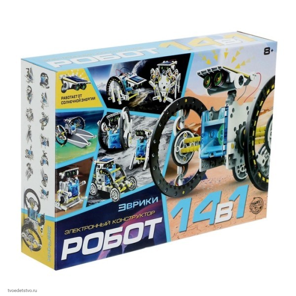 Малыш любит играть, но не любит учиться? С набором для опытов «Робот 14 в 1» ребёнок сам сможет сделать необычного многофункционального робота и при этом изучить основы физики.