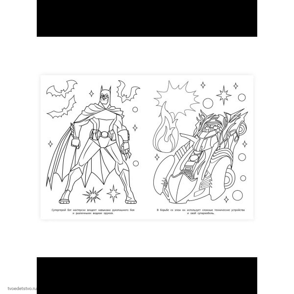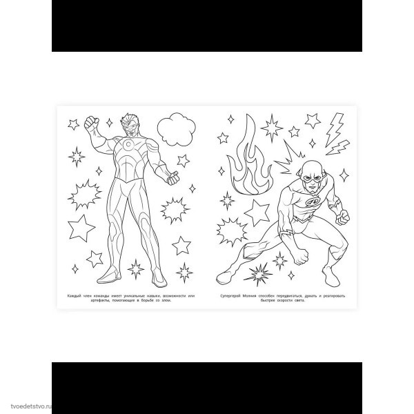 Эта увлекательная раскраска про самых известных супергероев непременно понравится вашему ребёнку. В ней он найдёт интересные картинки с чёткими контурами и сюжетными текстами к ним.