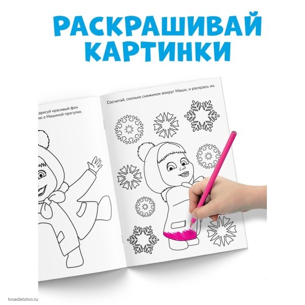 Раскраска «Чудесная» с заданиями — это отличный выбор для юных поклонников мультфильма «Маша и Медведь». Это не просто раскраска, а увлекательное занятие, которое объединяет творчество и развивающие задания. Яркие картинки с любимыми героями помогут ребёнку погрузиться в мир новогодней сказки и провести время с пользой.