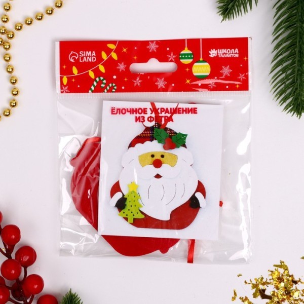 В наборе: элементы из фетра, лента для подвеса, изображение готовой поделки.