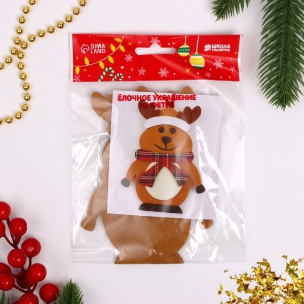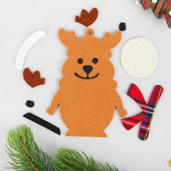 В наборе: элементы из фетра, лента для подвеса, изображение готовой поделки.