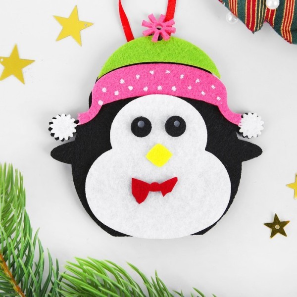 В наборе: элементы из фетра, лента для подвеса, изображение готовой поделки.