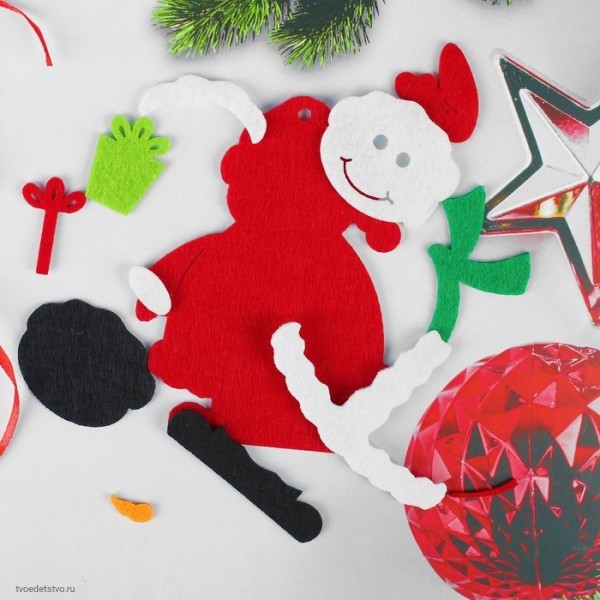 В наборе: элементы из фетра, лента для подвеса, изображение готовой поделки.