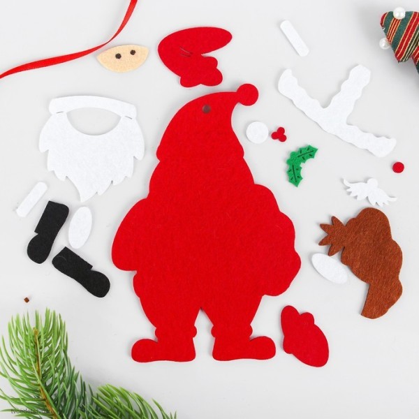В наборе: элементы из фетра, лента для подвеса, изображение готовой поделки.