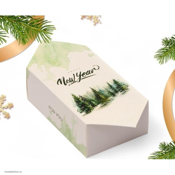 Складная новогодняя коробка в виде конфеты — это оригинальная и праздничная упаковка для подарков, которая подчеркнёт волшебную атмосферу зимних праздников.