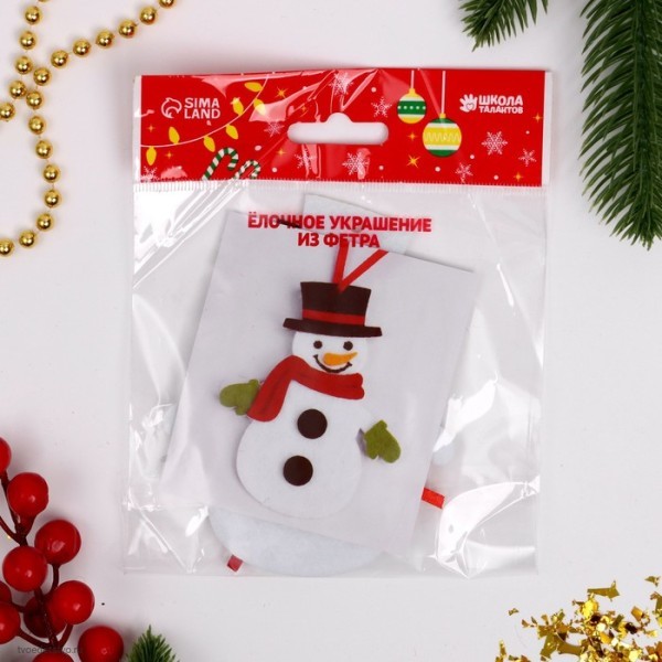 В наборе: элементы из фетра, лента для подвеса, изображение готовой поделки.