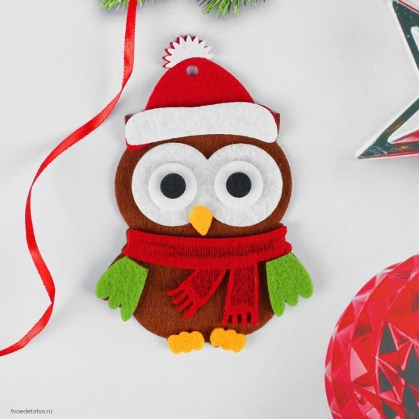 В наборе: элементы из фетра, лента для подвеса, изображение готовой поделки.